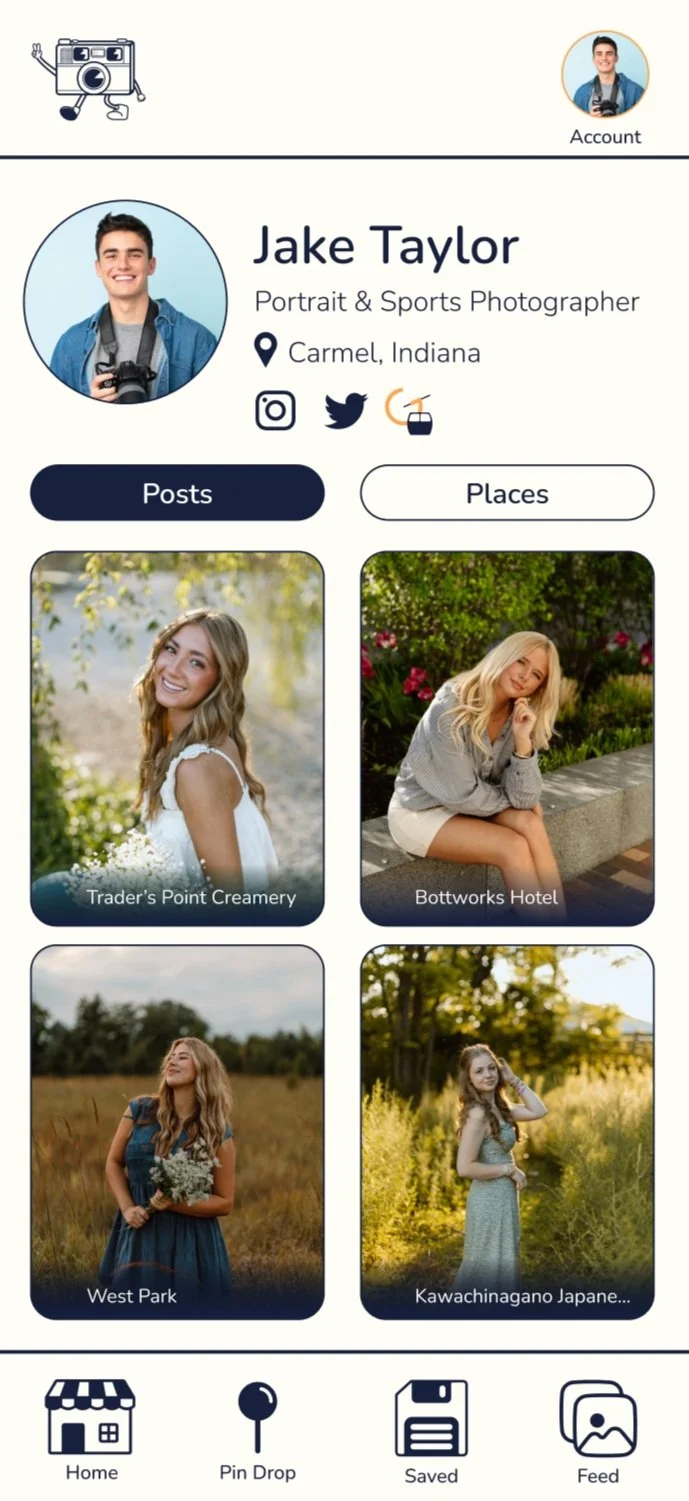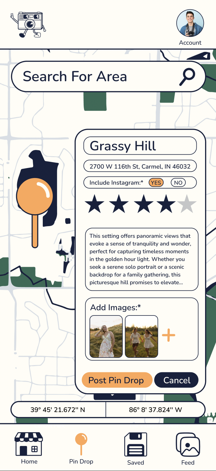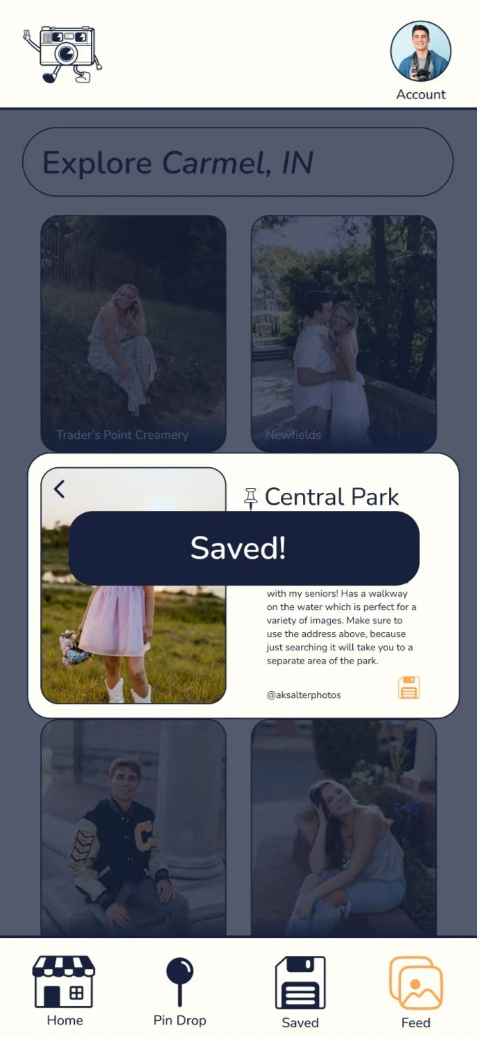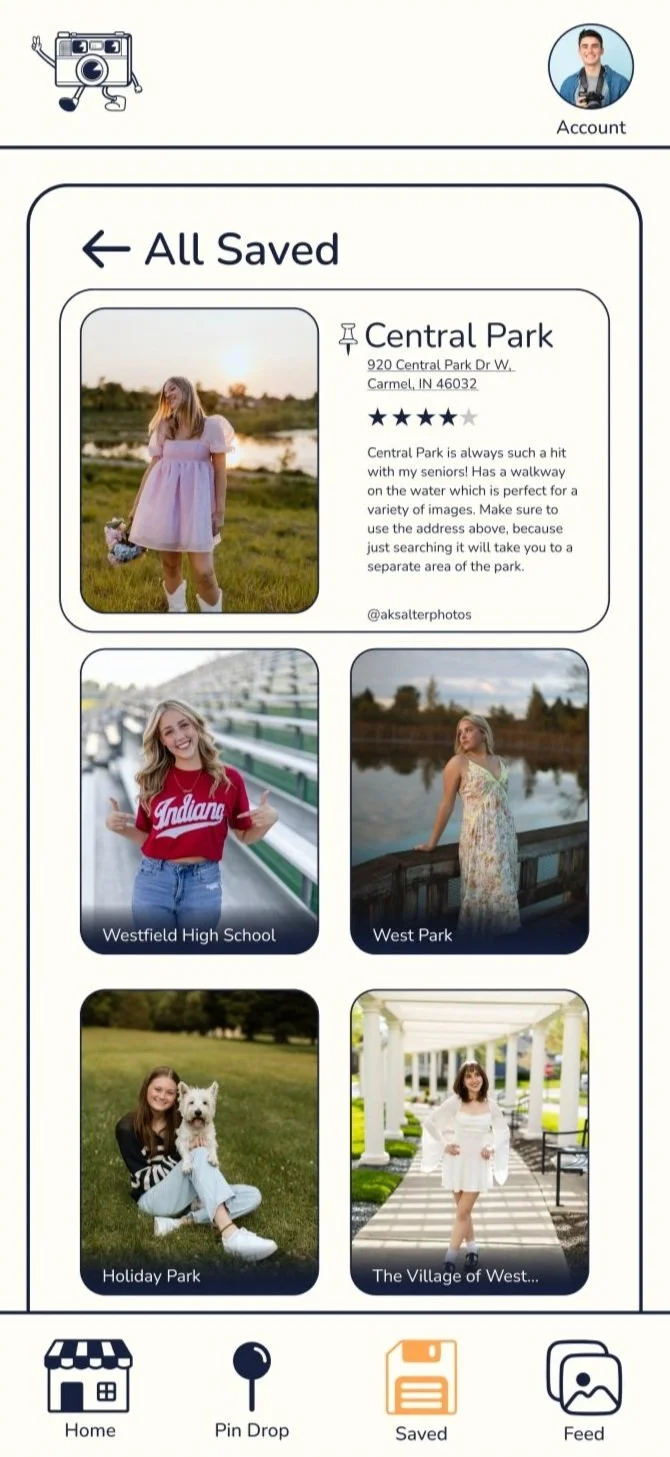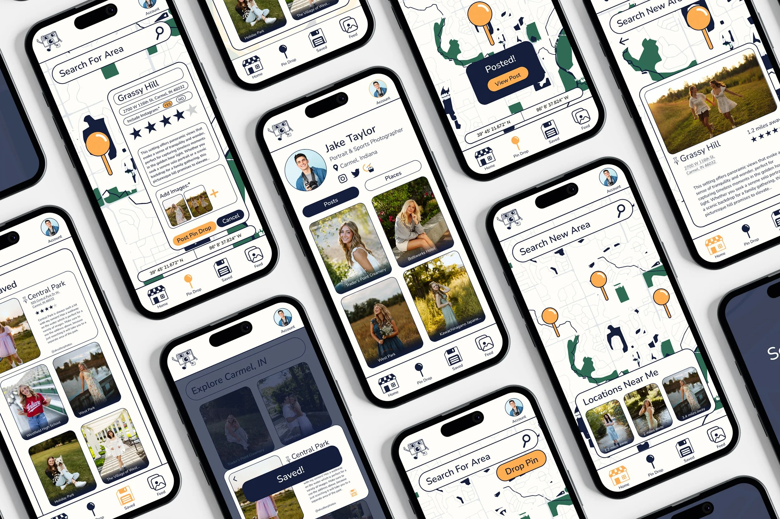 PinPoint & Shoot is a mobile app designed for photographers to document, save, and share their favorite shooting locations while fostering collaboration through community contributions. By encouraging users to exchange go-to spots, hidden gems, and creative backdrops, the app builds a supportive network that expands the range of available shooting options. For this project, I designed the interface and branding to capture the app’s mission of making session planning more accessible, inspiring, and community-driven.